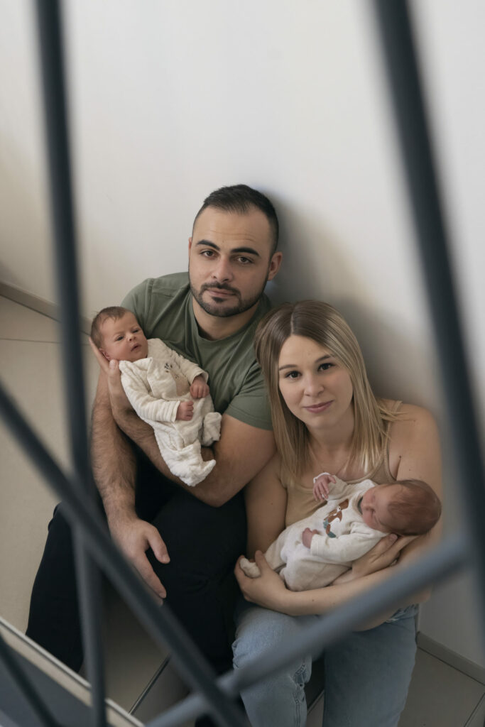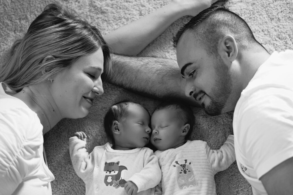 Portrait naturel d’une famille complice, capturé par Claire Stroh, photographe professionnelle.
